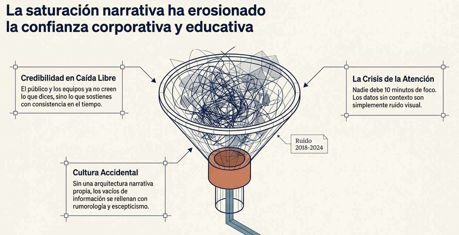 - Erosión de la confianza y crisis de atención: En una era de contenido infinito generado por máquinas, la credibilidad está en "caída libre". Las audiencias ya no creen lo que una institución dice (branding tradicional), sino lo que sostiene con hechos verificables a lo largo del tiempo.